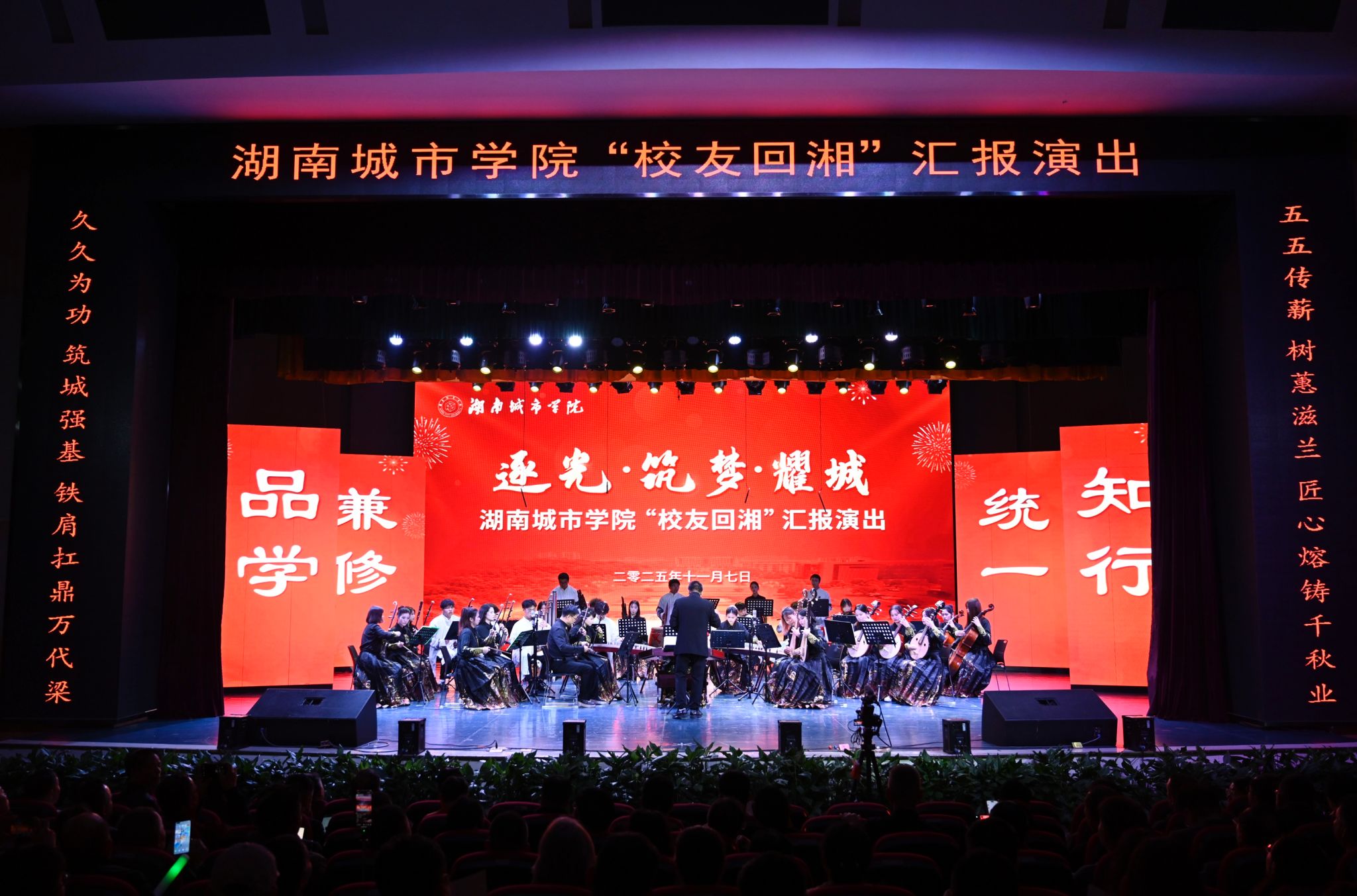 本网讯(通讯员 周贵湘 摄影 程强)11月7日晚,“逐光•筑梦•耀城”三亿体育_三亿(中国)“校友回湘”汇报演出在音乐厅精彩开演,全体在家校领导、嘉宾、校友代表及师生400余人齐聚一堂,共赴这场融合爱校情怀与艺术魅力的视觉盛宴。